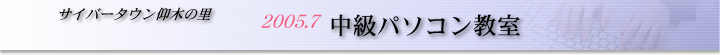 平成17年7月3日、10日の両日、サイバータウン仰木の里 中級パソコン教室が行われました。テーマはホームページ作成。初日はテキストに沿った講義、2日目は実際にサイバータウンのコンテンツを実習として作成いたしました。