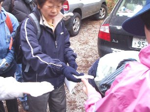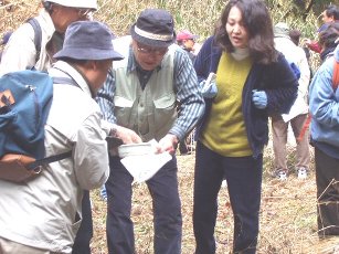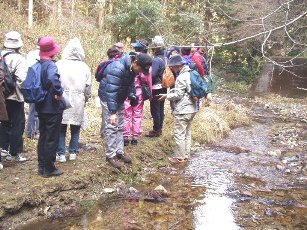 | 平成15年2月14日午前、仰木の里の身近な自然を探索する催しとして冬の「仰木の里山」が環境部会主催により行われました。 当日は、合計34人と主催者も予想を越える参加者に来て頂きました。 場所は、仰木から大原に抜ける仰木峠の坂道にかかる手前の滝壷神社跡で、 仰木の氏神、小椋神社の祭神のひとつ”くらおかみのかみ”が祀られています。 雪があれば小動物の足跡も見られるかもと想像していましたが、あいにく雪は融けていました。そのかわりきれいな川の石の下に虫がいっぱいいました。 身近な自然の良さを再発見しました。 また、環境部会も参画している「おおつ環境フォーラム地域かんきょう学校づくりプロジェクト」から数人が参加されました。 |