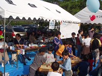 彦根産ゲーム”カムロ”を楽しむ子供たちが集まり、皆で折り紙なども。