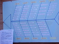 福祉部会が助け合いの仕組み作りを魚の骨の形にまとめた表を発表。 見やすく、分かりやすいのが特徴です。