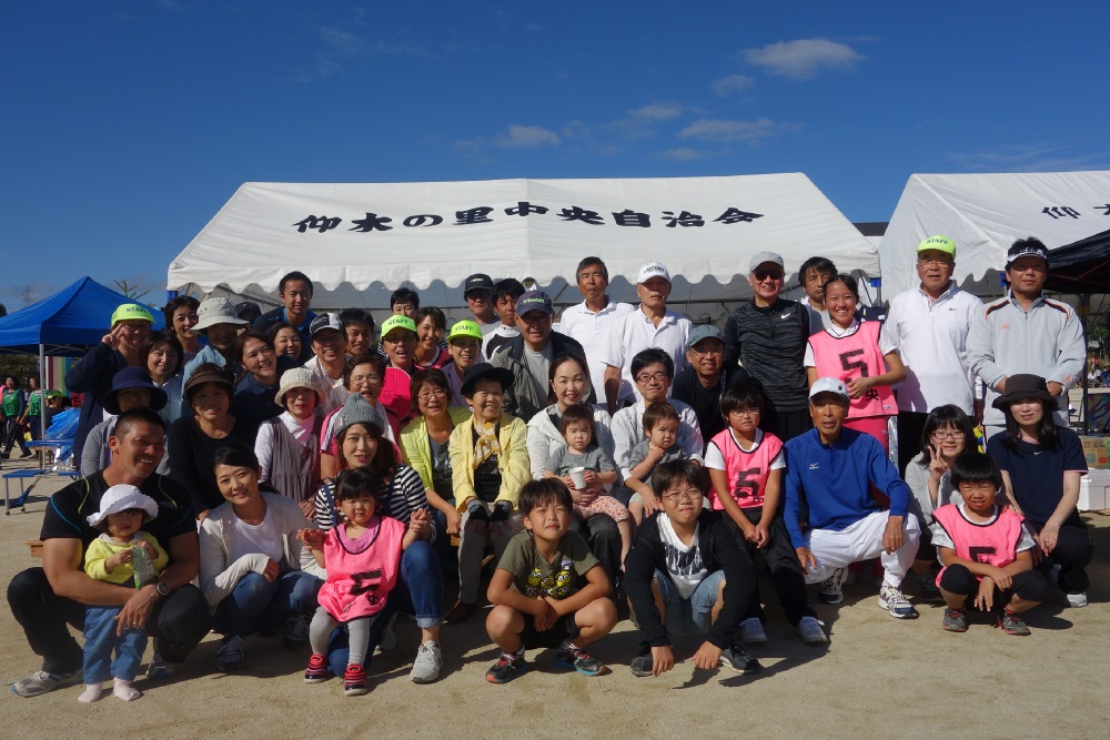 10月運動会で3年連続で1位になったグランドゴルフ、2016年チームのショットです。笑顔がいいですね?、自治会活動に参加するって素晴らしい。