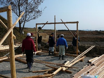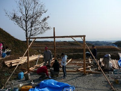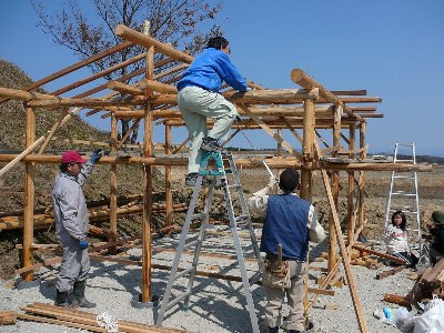 小屋建設 - 建て方棟上