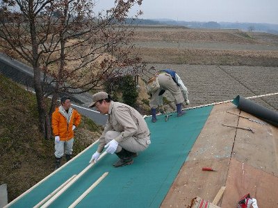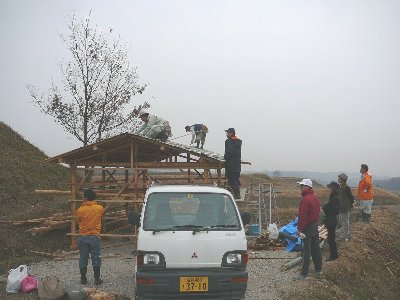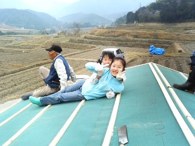 午後0時 雨が降って来ましたが屋根の波板鉄板は完了