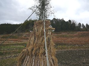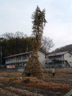 | 1月14日 もちプロ初めてもとんど焼き 今年の恵方(南南東)におかざりを付けます |