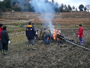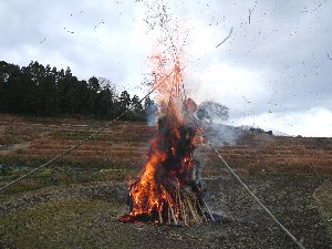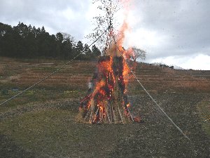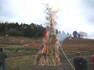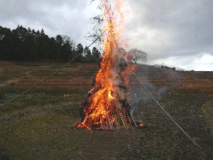 | 枚方市尊延寺地区で行っている「とんど焼き」 | ||